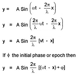 3. Consider a harmonic wave travelling along the +ve x-direction with a speed V. Let ‘0’ be the particle in the medium. Its displacement at any instant of time may be written as y = A sin ωt
