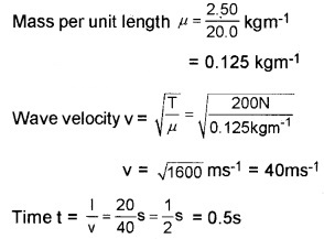 ∴ Length of wire l = \(\frac{M}{\mu}=\frac{3.5 \times 10^{-2}}{4 \times 10^{-2}}\) m = 0.875m