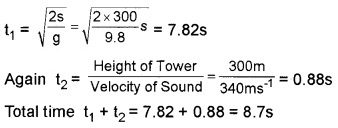 A stone dropped from the top of a tower of height 300m high splashes into the water of a pond near the base of the tower. When is the splash heard at the top. Given that the speed of sound in air is 340ms-1? (g = 9.8ms-2)