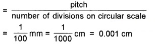 - A screw guage of pitch 1 mm and 100 divisions on the circular scale