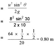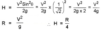 (c) Horizontal range, R = \(\frac{\mathrm{u}^{2} \sin 2 \theta}{\mathrm{g}}\);
