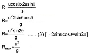 3. Range of projectile R = \(\frac{\mathrm{u}^{2} \sin 2 \theta}{\mathrm{g}}\)