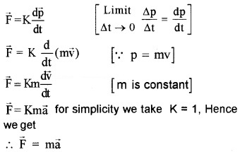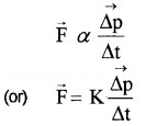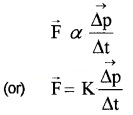 3. Consider a body of mass ‘m’ moving with a momentum \(\vec{p}\). Let \(\vec{F}\) be the force acting on it for time internal ∆t. Due to this force the momentum is changed from \(\vec{p}\) to p + ∆p. Then according to Newtons second law, we can write