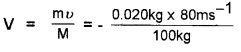 m = 0.02kg, M = 100kg, v = 80ms-1, V = ?