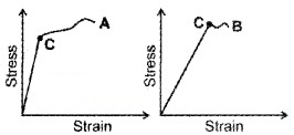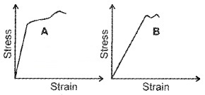 2. The fracture point is greater for A. Hence A is stronger. Due to high strength, the material A is used as rope in a crane.