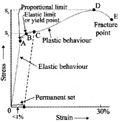 - Draw the stress-strain diagram and mark the positions of elastic limit and the regions of elastic and plastic behaviors.