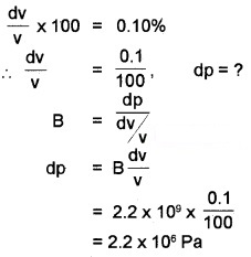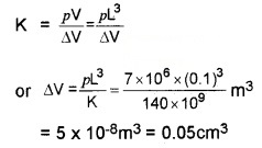 Determine the volume of contraction of a solid copper tube 10cm on an edge, when subjected to a hydraulic pressure of 7 × 106Pa. Bulk modulus of copper =140 × 109Pa.