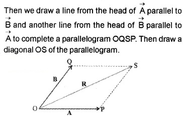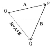 The diagonal of parallelogram OQSP, gives the resultantof (\(\vec{R}\) = \(\vec{A}\) + \(\vec{B}\)) of two vectors \(\vec{A}\) and \(\vec{B}\).