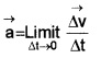 If the velocity of an object changes from \(\overrightarrow{\mathrm{v}} \text { to } \overrightarrow{\mathrm{v}^{1}}\) in time Dt, then its average acceleration is given by