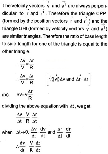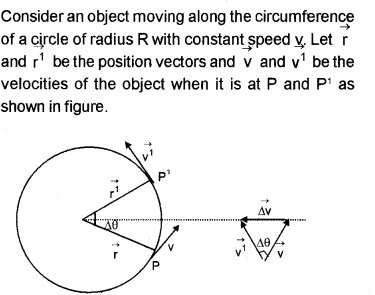 The direction of this acceleration should be in the direction of \(\overrightarrow{\Delta V}\). Fig (b) shows that \(\overrightarrow{\Delta V}\) is towards the centre of the circular path. Hence the acceleration is directed towards the centre of the circle and is called centripetal acceleration.