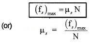 - Limiting friction (fs): The maximum value of static friction is called limiting friction.