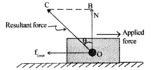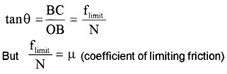 Consider a body placed on a surface. Let N be the normal reaction and flimit is the limiting friction. Let ‘θ’ be the angle between Resultant vector and normal reaction. From the triangle OBC,