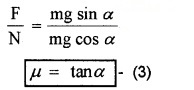 Angle of friction is the angle whose tangent gives the coefficient of friction.