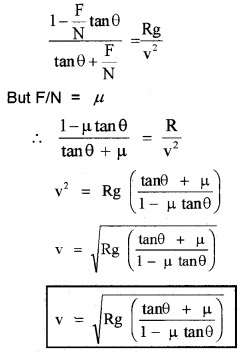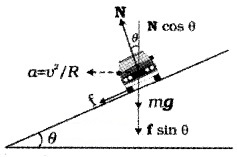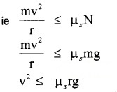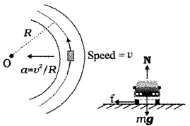 Centripetal force f = \(\frac{\mathrm{mv}^{2}}{\mathrm{R}}\)