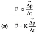 Consider a body of mass ‘m’ moving with a momentum \(\vec{p}\). Let \(\vec{F}\) be the force acting on it for time internal Dt. Due to this force the momentum is changed from \(\vec{p}\) to p + Dp. Then according to Newtons second law, we can write