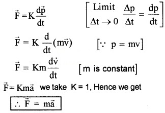 The rate of change of momentum of a body is directly proportional to the applied force and takes place in the direction in which the force acts. Mathematically this can be written as