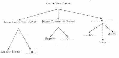 Complete the given branching diagram based on connective tissue. (MARCH-2017)