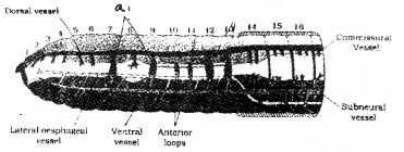 Blood glands are present on the 4th, 5th and 6th segments. They produce blood cells and haemoglobin which is dissolved in blood plasma. Hepatic caeca or gastric caecae is present at the junction of foregut and midgut, which secrete digestive juice.
