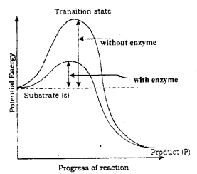 a) Enzyme lower the activation energy and reaction proceeds at rate faster than that of uncatalysed reaction.