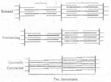 Based on the diagram given below, can you write down the structural changes occuring in sarcometres during muscular contraction? (SAY-2015)