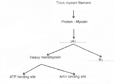 Complete the following chart showing structure of myosin flament and its protein based on the hints given in the brackets. (MARCH-2017)