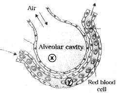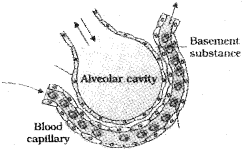 The given diagram shows the exchange of gases between the alveolus and alveolar-capillary.