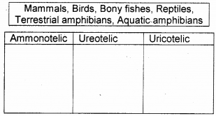 Classify the following animals on the basis of the mode of nitrogenous waste excretion in the table given below.