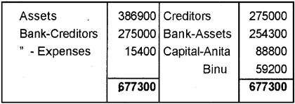 Anita and Binu were partners sharing profits in the ratio of 3:2. On the date of dissolution their capitals were: (March 2009)