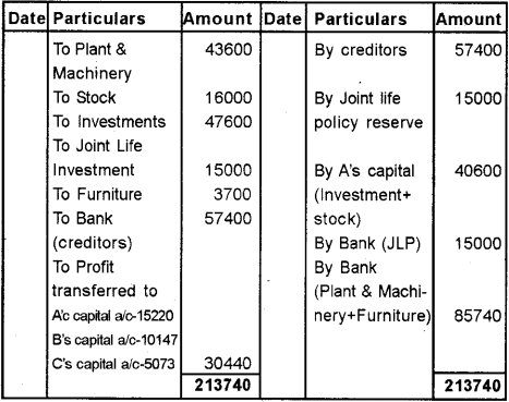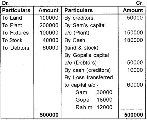 The firm dissolved on the above date. Following transaction took place: