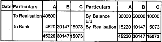 Prepare Realisation Account, Partner’s Capital Account and Bank Account.