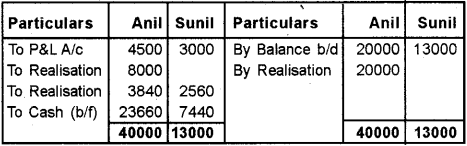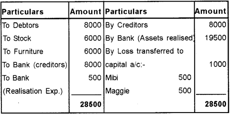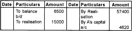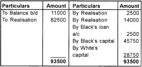 Note: Balance of Black’s loan a/c Rs. 500 (3000 – 2500) being profit will be transferred to the Realisation a/c.
