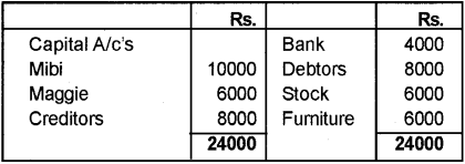 Mibi and Maggie were in partnership, sharing profits and losses equally. Their Balance Sheet as on 31.03.2013 was as follows. (March 2014)