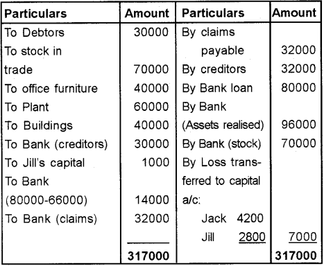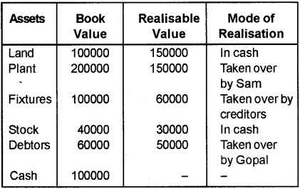 a) Assets realised as – Land and Buildings – Rs.120000, Stock – Rs. 40000, Accounts receiv-able – Rs.15,000.