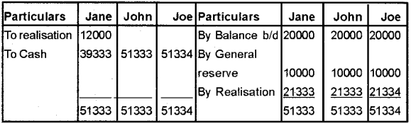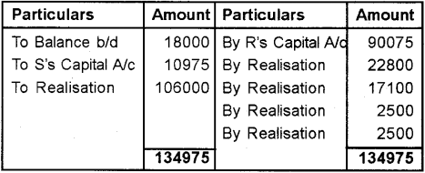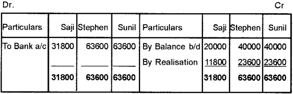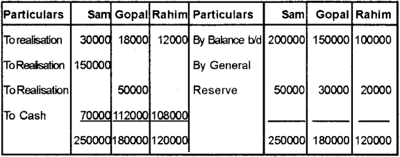 Realisation account, Partner’s Capital Account, Bank Account.