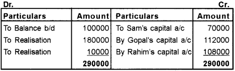 a) Given below is an abstract of particulars related to a dissolved partnership firm on 31.3.2009 where Sam, Gopal and Rahim were partners sharing profits on 5:3:2. (June 2010)
