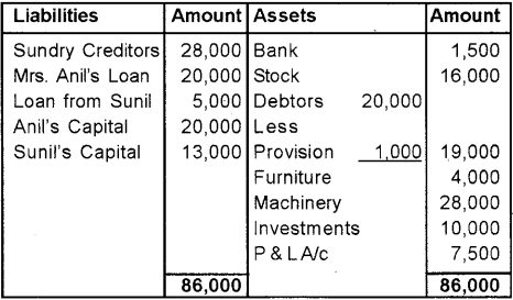 a) Anil and Sunil are partners sharing profits and losses in the ratio of 3:2. Their Balance Sheet as on 31st December 2010. (March 2012)