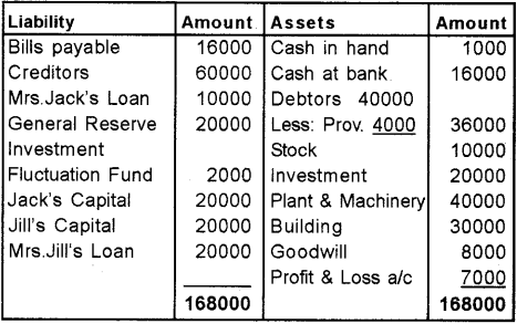 The following is the Balance Sheet of Jack and Jill as on 31 st December 2007. (Score 4) (June 2012)