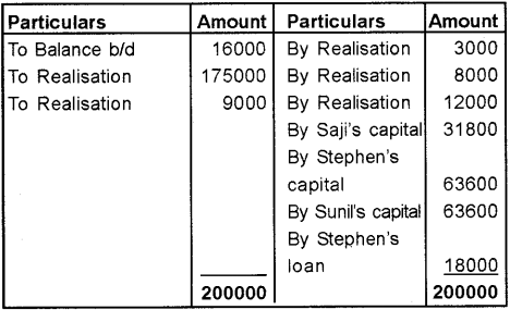 A) Saji, Stephen and Sunil were partners sharing profits and losses in the ratio of 1:2:2. Their Balance Sheet as on 31st March 2013 was as follows: (March 2014).