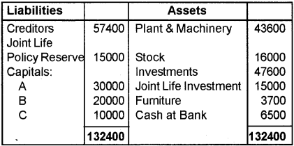 e) Plant realised Rs.50000, buildings Rs.80000, goodwill Rs.12000 and remaining investments Rs.9000.