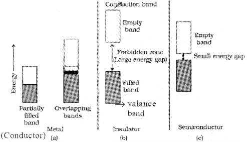 ii) In conductors, the valance band overlaps with Ir e conduction band or no energy gap exists between the valance band and conduction band.
