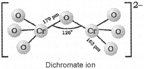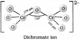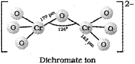 ii) The dichromate ion consists of 2 tetrahedra sharing one comer with Cr – O – Crbond angle of 126°.