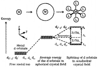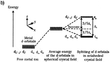 b) Draw the figure to show the splitting of ‘d’ orbitals in octahedral crystal field.