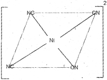 a) In the complex ion [Ni(CN)4]2- the central metal atom Ni is in +2 oxidation state and has the electronic configuration 3d8. Since CN – is a strong field ligand two unpaired electrons are forced to pair up against and give fourdsp2 hybrid orbitals. Each of the hybrid orbitals receive a pair of electrons from a cyanide ion to form [Ni(CN)4]2. Since there is no unpaired electron, the complexion is diamagnetic.