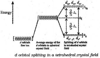 d) Draw the diagram which indicates the splitting of ‘d’ orbitals in the tetrahedral field.