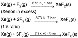 2. XeF2 and XeF4 are formed by the direct reaction of elements under the specific conditions.