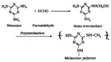 Formed by the condensation polymerisation of melamine and formaldehyde. Use: for making unbreakable crockery.