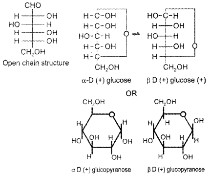 Give the open chain and ring structures of glucose and account for the existence of glucose in two anomeric forms.