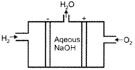 Diagrammatically represent H2 – O2 fuel cell and write the half cell reactions taking place in this cell.