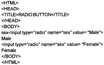 - .<input type=”Radio” name=”Sex” value= “Male”>Male