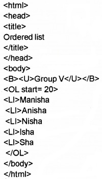 Your class selected you as the group leader of Group V. In your group there are 5 students with Roll No. 20 to 24. Prepare a list using appropriate tag in HTML.